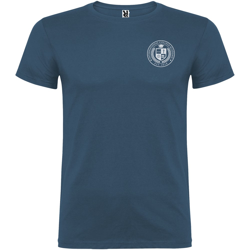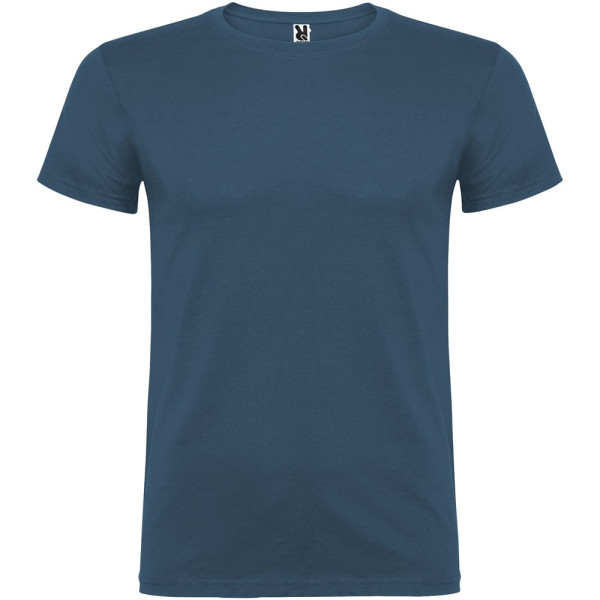 T-shirt met korte mouwen en dubbellaagse ronde hals van elastaan, gemaakt van buisvormige stof voor volwassenen. Versterkte bedekte naden in de kraag. Verwijderbaar etiket. Het model is 190 cm en draagt maat L.