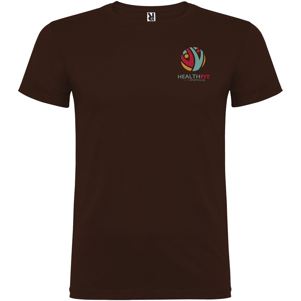 T-shirt met korte mouwen en dubbellaagse ronde hals van elastaan, gemaakt van buisvormige stof voor volwassenen. Versterkte bedekte naden in de kraag. Verwijderbaar etiket. Het model is 190 cm en draagt maat L.