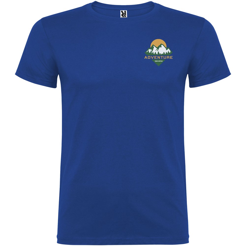 T-shirt met korte mouwen en dubbellaagse ronde hals van elastaan, gemaakt van buisvormige stof voor volwassenen. Versterkte bedekte naden in de kraag. Verwijderbaar etiket. Het model is 190 cm en draagt maat L.