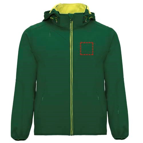 Tweelaags softshell in sportieve pasvorm. Contrasterende centrale rits met kinbeschermer en trekker. Binnenvoering van contrasterende microfleecestof. Buitenzak op de rechterborst met onzichtbare rits in diagonale vorm. Twee zijzakken met onzichtbare rits. Zak op de linkermouw. Bijpassende elastische bies in manchetten en zoom. Opvouwbare capuchon met contrasterende micropolaire voering. Verwijderbaar etiket. Waterbestendig. Winddicht. Het mannelijke model is 185 cm en draagt maat M en het vrouwelijke model is 174 cm en draagt maat S.