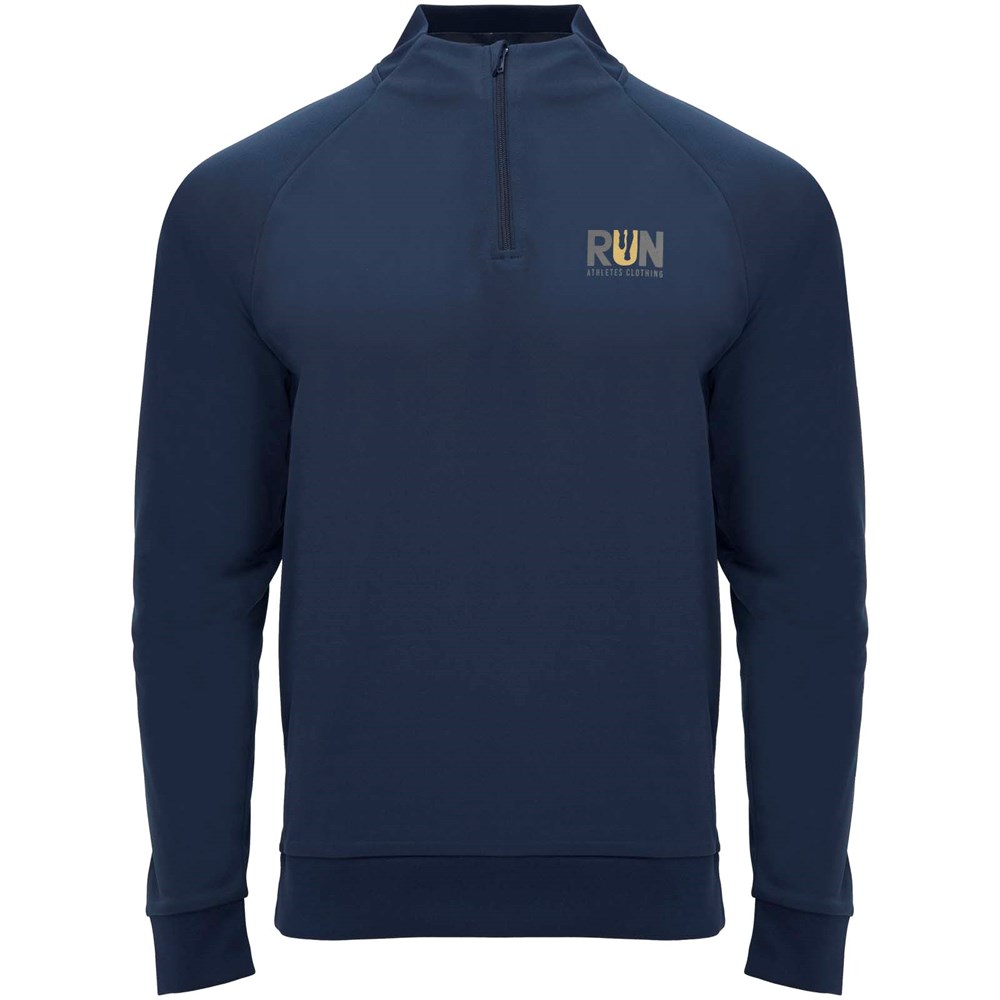 Technische stof. Raglanmouwen. Fleece aan de binnenkant. Kraag met halve rits en bijpassende verstevigde bedekte naden. 1x1 rib in kraag, manchetten en zoom. Verwijderbaar label. Sweatshirt passend bij Neapolis broek.