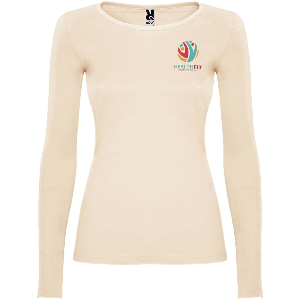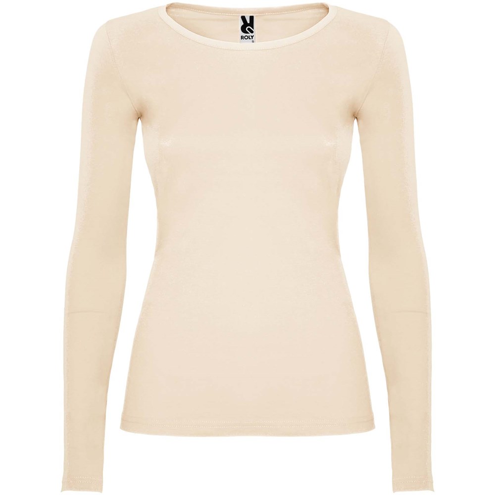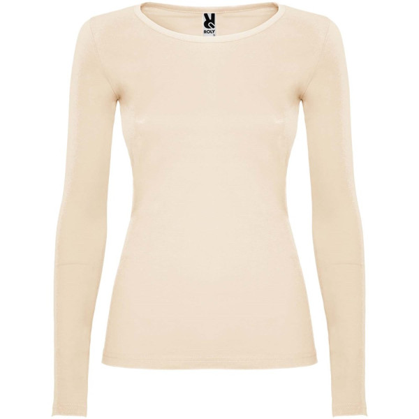 Half getailleerd T-shirt met lange mouwen en fijn afgezette hals. Geen manchetten. Zijnaden. Verwijderbaar etiket.