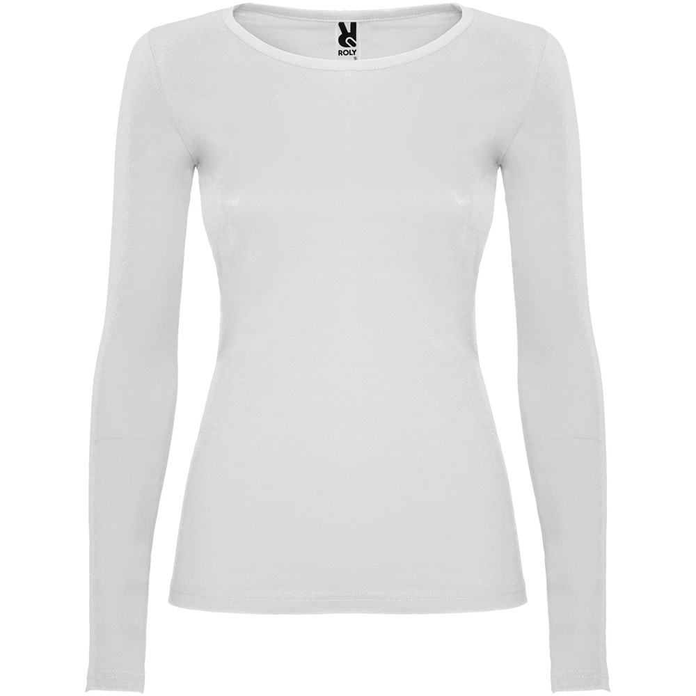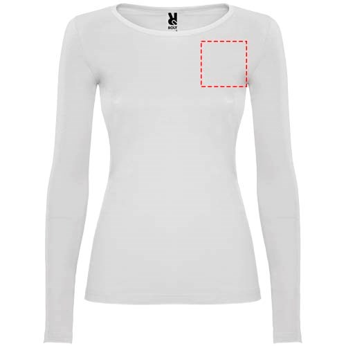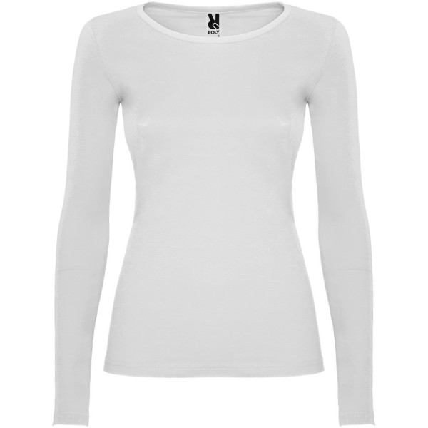 Half getailleerd T-shirt met lange mouwen en fijn afgezette hals. Geen manchetten. Zijnaden. Verwijderbaar etiket.