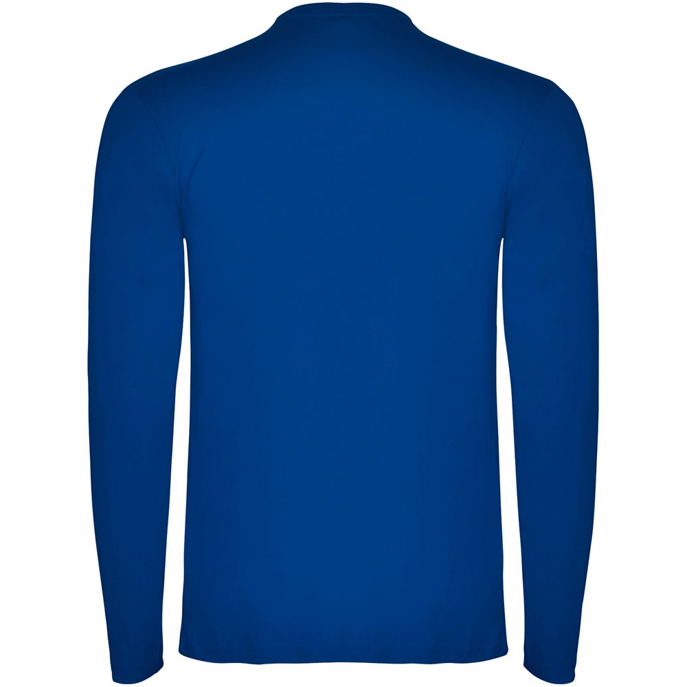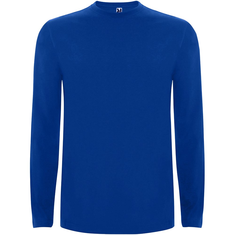 T-shirt met lange mouwen van buisvormige stof en 4-laags ronde hals. Versterkte bedekte naden in kraag en schouders. Geen manchetten. Verwijderbaar etiket. Buisvormig ontwerp in volwassen maten en zijnaden in kindermaten. Het model is 185 cm en draagt maat L.