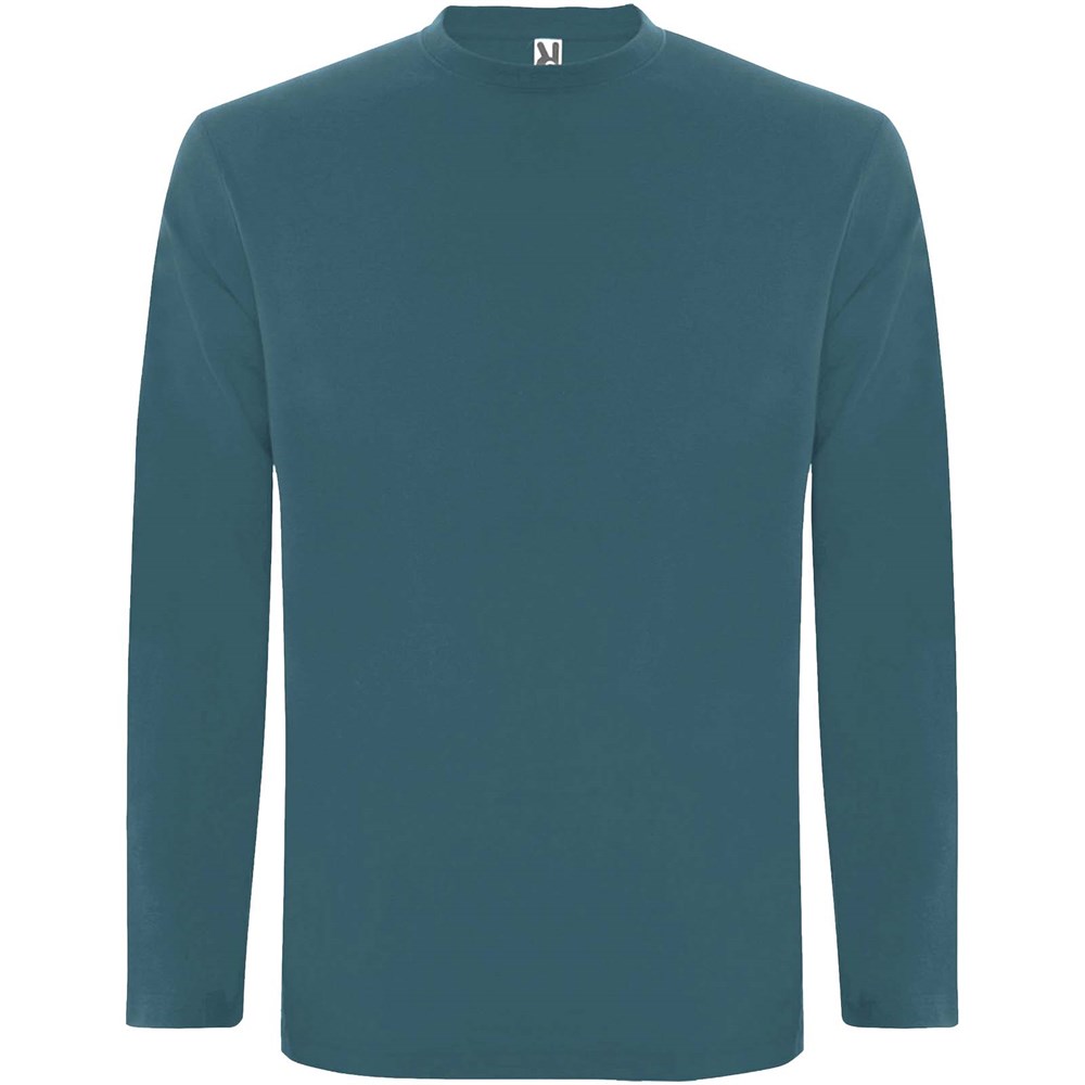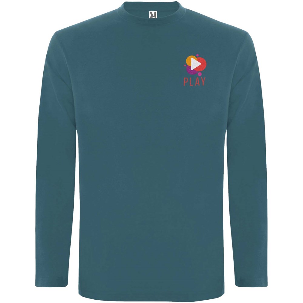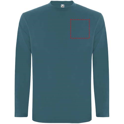 T-shirt met lange mouwen van buisvormige stof en 4-laags ronde hals. Versterkte bedekte naden in kraag en schouders. Geen manchetten. Verwijderbaar etiket. Buisvormig ontwerp in volwassen maten en zijnaden in kindermaten. Het model is 185 cm en draagt maat L.