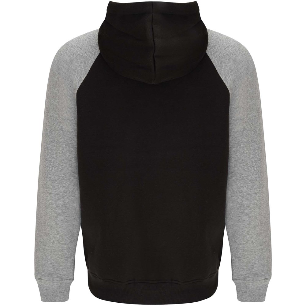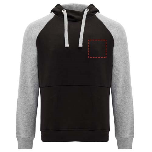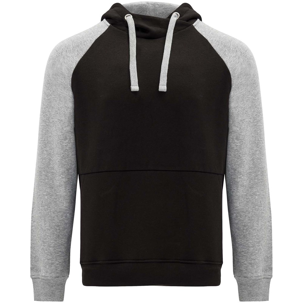 Tweekleurige unisex hoodie. Capuchon met gekruiste hals en metalen oogjes. Contrasterende binnenkant van de capuchon, trekkoord en raglanmouwen. Kangoeroezak. Manchetten en zoom van 1x1 ribgebreid elastaan. Verwijderbaar label.