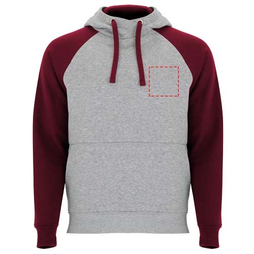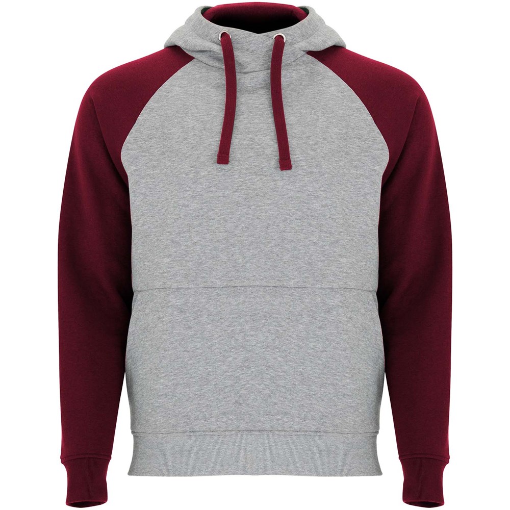 Tweekleurige unisex hoodie. Capuchon met gekruiste hals en metalen oogjes. Contrasterende binnenkant van de capuchon, trekkoord en raglanmouwen. Kangoeroezak. Manchetten en zoom van 1x1 ribgebreid elastaan. Verwijderbaar label.