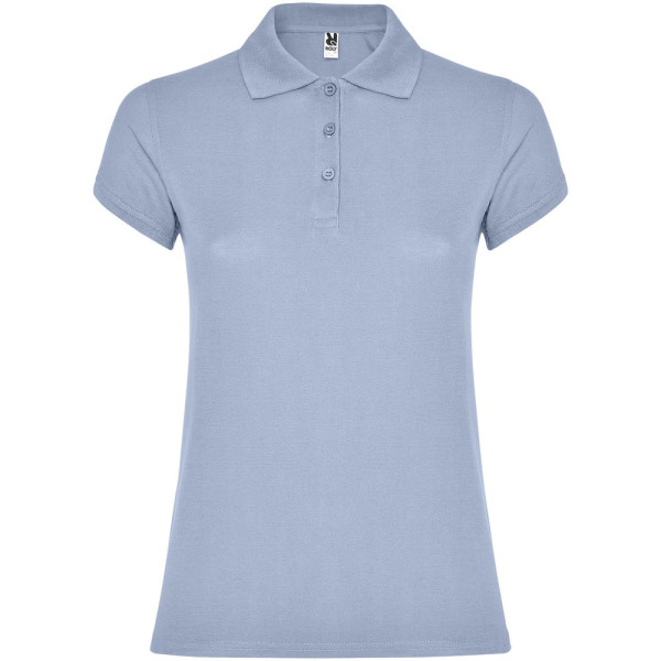Poloshirt met korte mouwen voor dames. Versterkte bedekte naden in de binnenkant van de kraag. 1x1 geribde kraag en manchetten. Zijnaden en aansluitende snit. Smalle sluiting met drie knopen. Zijsplitten. Verwijderbaar etiket. Het model is 179 cm en draagt maat S.