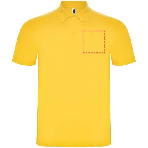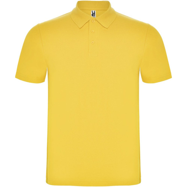 Poloshirt met korte mouwen, sluiting met drie knopen en 1x1 geribde kraag. Versterkte bedekte naden in de kraag. Verwijderbaar etiket. Het model is 190 cm en draagt maat L.