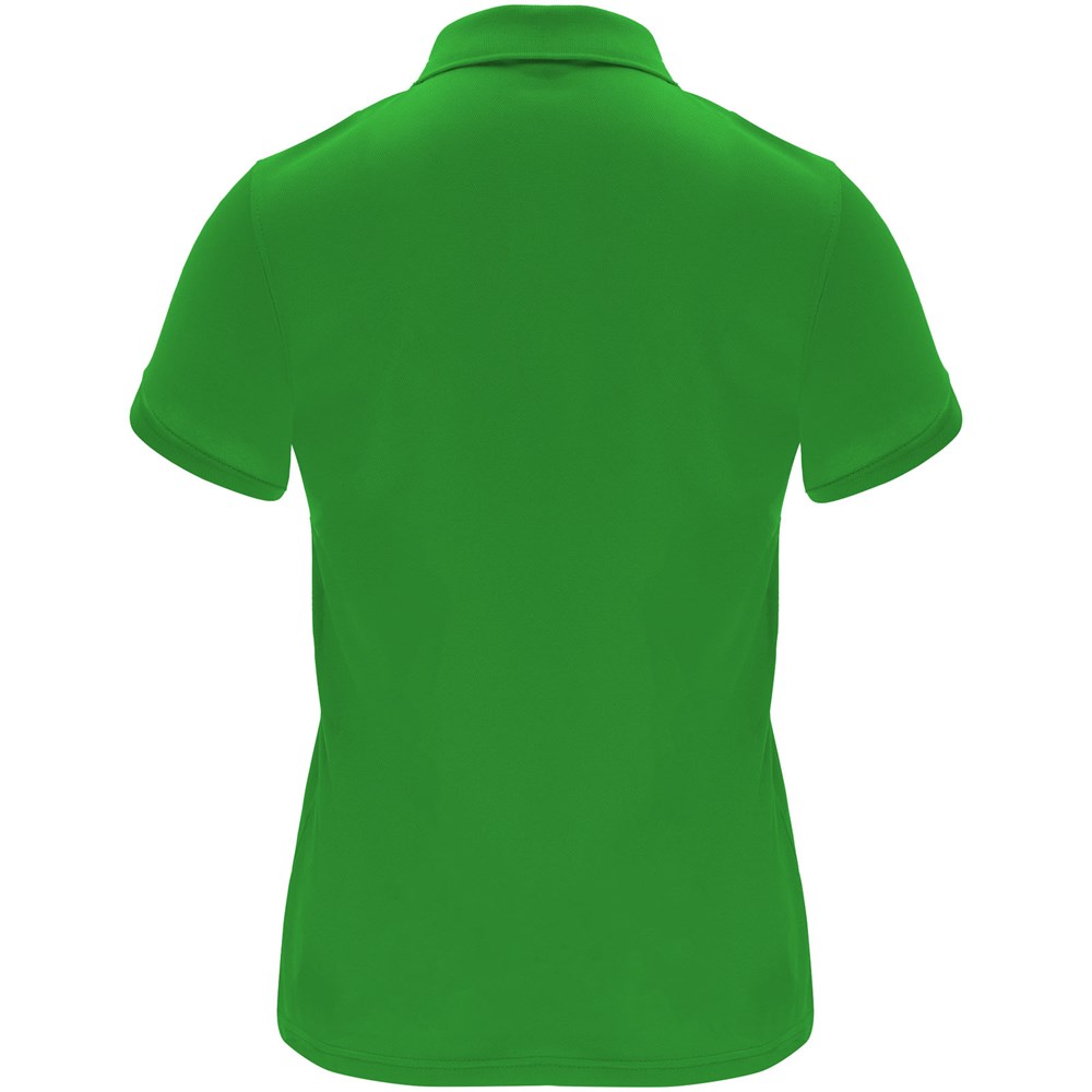Technisch poloshirt met korte mouwen voor dames. Gebreide kraag met sluiting met drie knopen. Getailleerde snit. Ademende, gemakkelijk wasbare en droge stof. Verwijderbaar etiket. Technische stof. Ademende stof. Het model is 173 cm en draagt maat S.
