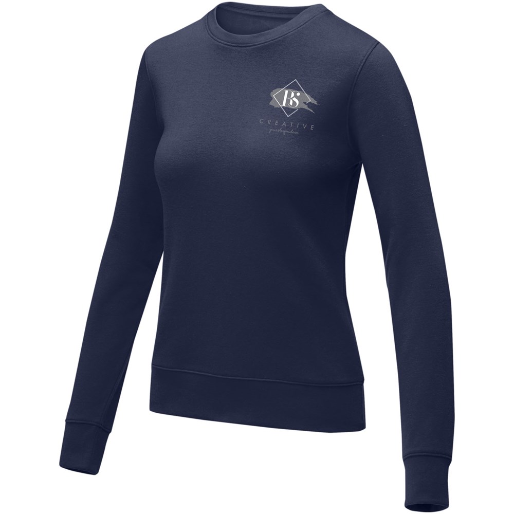De Zenon dames sweater met ronde hals - combineert comfort met een klassiek ontwerp. Gemaakt van een 240 g/m² mix van katoen en polyester. Het klassieke ontwerp met ronde hals wordt geaccentueerd door plat gebreide ribdetails aan de kraag, manchetten en onderkant, voor een goede pasvorm en een vleugje verfijning. Bovendien kun je de binnenkant van de trui voorzien van een persoonlijk merk of persoonlijke label. De geborstelde binnenkant voegt een extra laag gezelligheid toe, waardoor hij perfect is voor koudere dagen. Met zijn doordachte ontwerp en hoogwaardige materialen is de Zenon trui een veelzijdige essential die een vleugje individualiteit toevoegt aan je look en tegelijkertijd zorgt voor maximaal comfort. Deze sweater is ontworpen met een getailleerde vorm voor een vrouwelijke look.