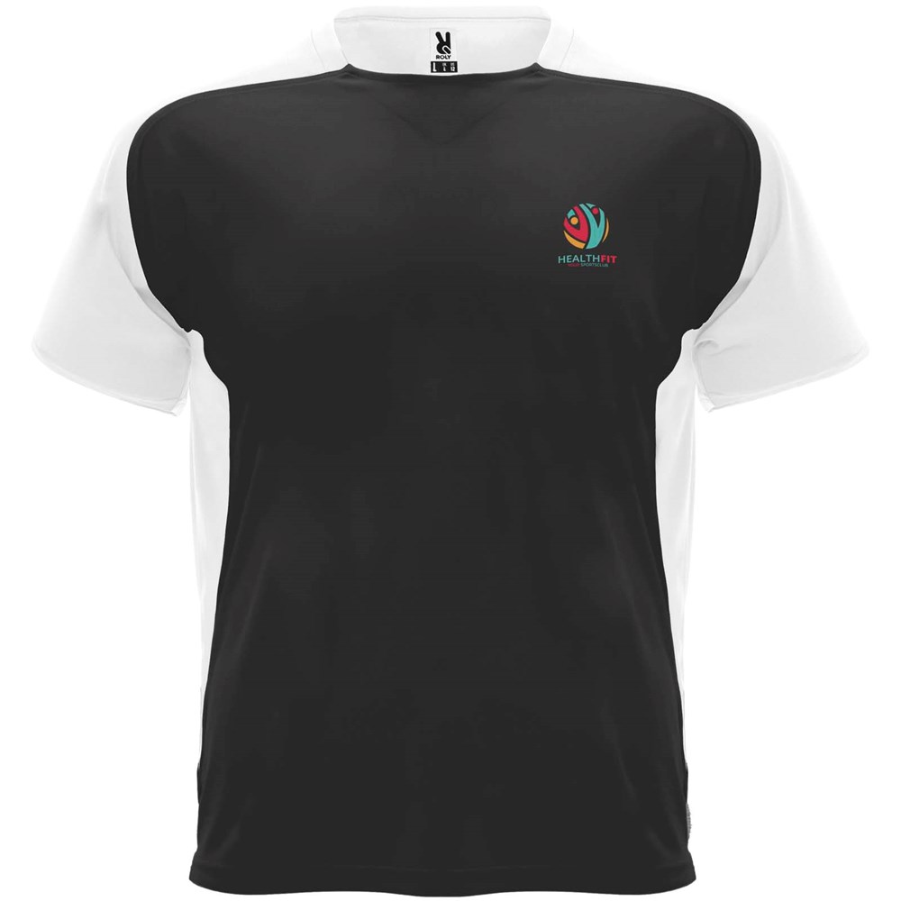 Technische en ademende stof. Ronde hals met bijpassende bedekte naden. Raglanmouwen en contrasterende zijpanelen. Verwijderbaar label.