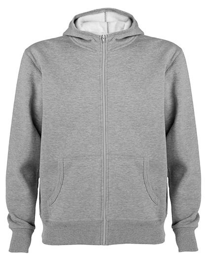 Sweatjack met capuchon, hoge hals en volledige ritssluiting | Geribbeld detail in capuchon en zakbiezen | Kangoeroezak | 2x2 rib in manchetten en taille