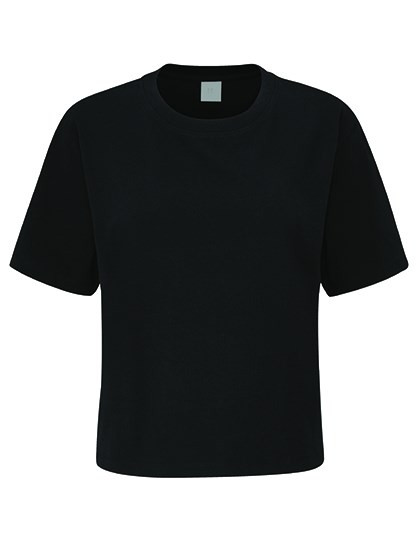 100% (biologische of in omschakeling naar biologische) katoen | Single jersey | Zachte zware stof | Afgesneden lengte (cropped) | Losse pasvorm | Afscheurbaar neketiket | Zorglabel met QR-code om de toeleveringsketen te volgen en de positieve impact van biologisch kopen te controleren | Zorglabel gemaakt van biologisch katoen