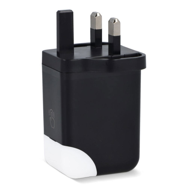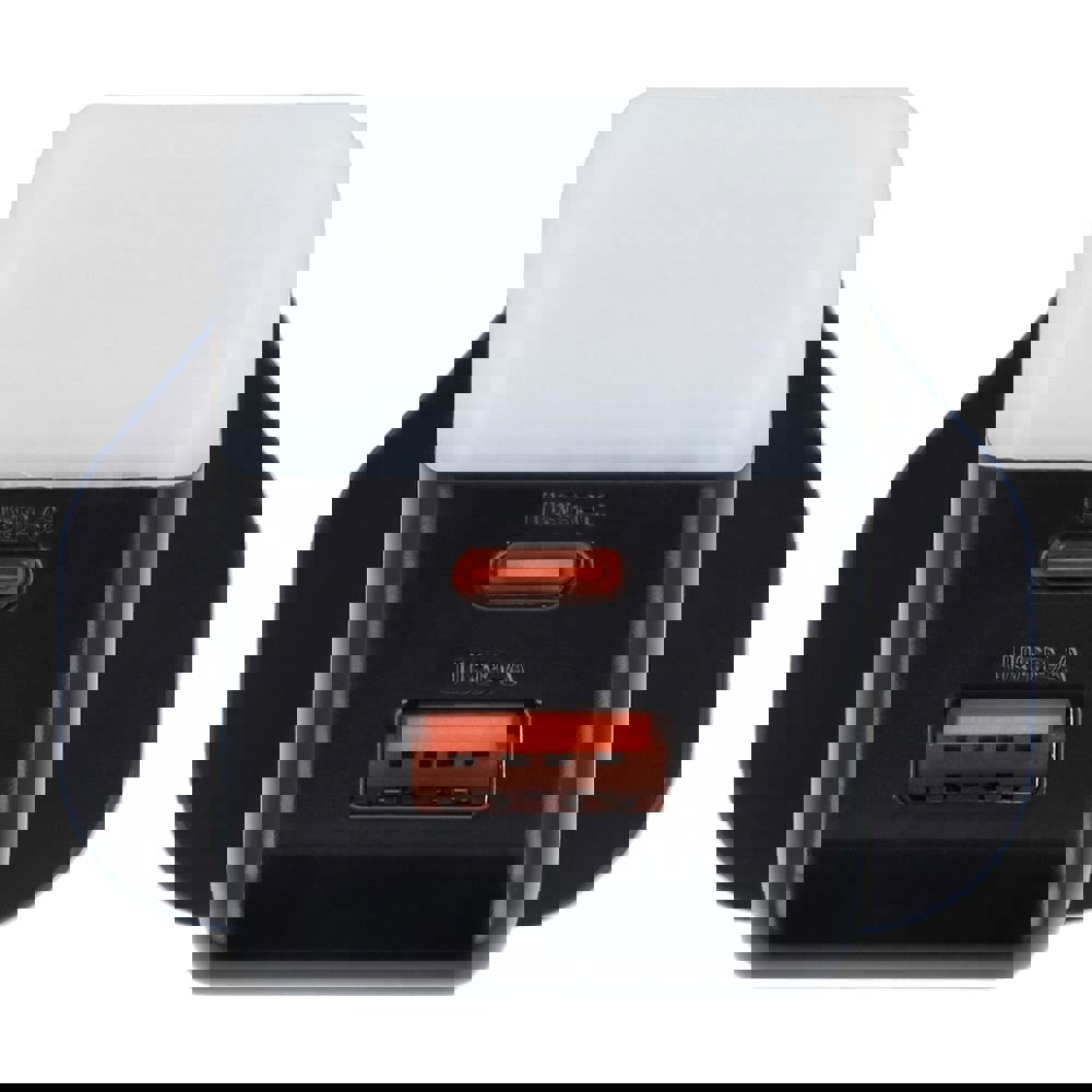 Deze compacte 65W GaN-stroomadapter laadt laptops, tablets en smartphones op. Met een slim oplaadlampje dat uitgaat wanneer volledig opgeladen. De adapter heeft USB-A (max. 18W) en Type-C (max. 65W) poorten en levert efficiënt vermogen, zelfs bij gelijktijdig gebruik (9W per poort). Gemaakt van brandwerend gerecycled plastic.