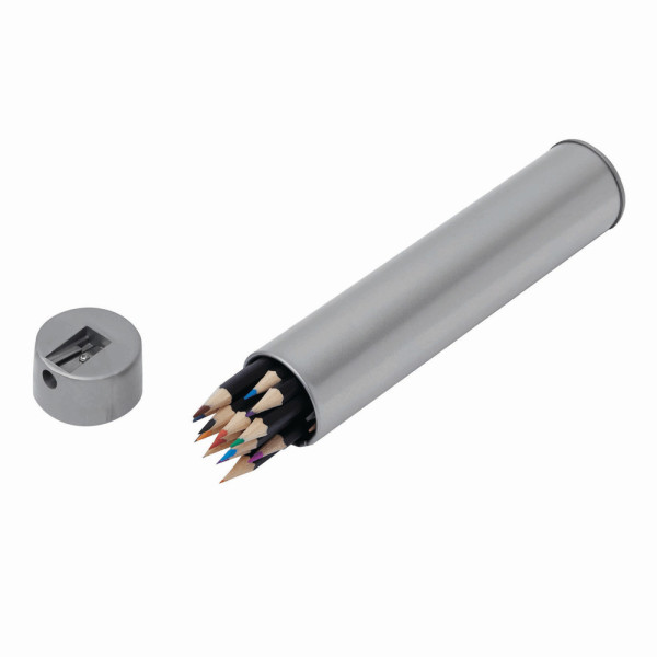 20-delige tekenset COLOUR BALANCE (geslepen) in metalen koker met in de dop een puntenslijper.meer