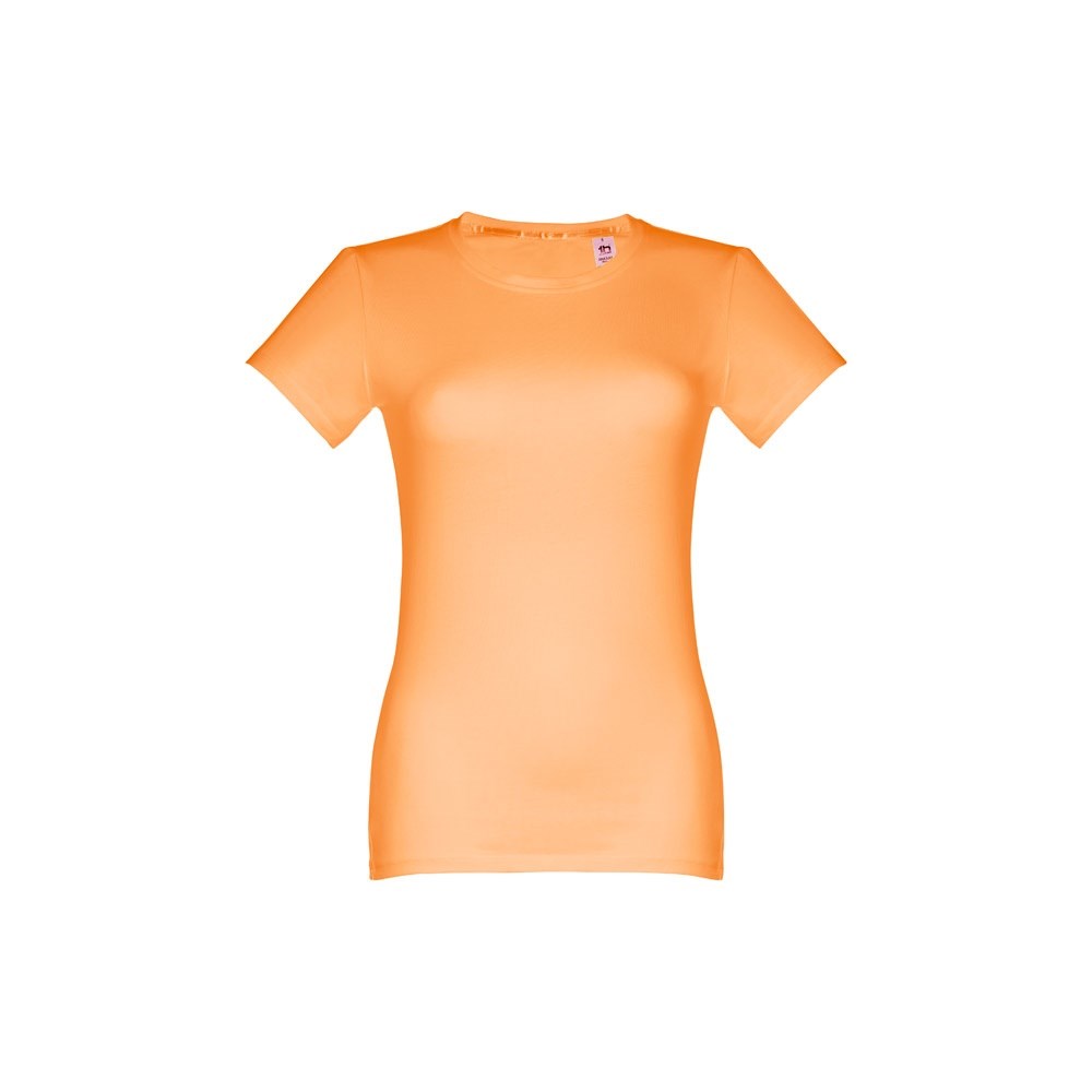 Getailleerd 100% gekaard katoenen jersey dames T-shirt (190 g/m²) (kleur 183: 90% katoen en 10% viscose). Bevat dunne jersey kraag met satijnen verstevigingslint. Gesneden en genaaid stuk met dubbele zoom aan de mouwen en onderkant. Maten: S, M, L, XL, XXL