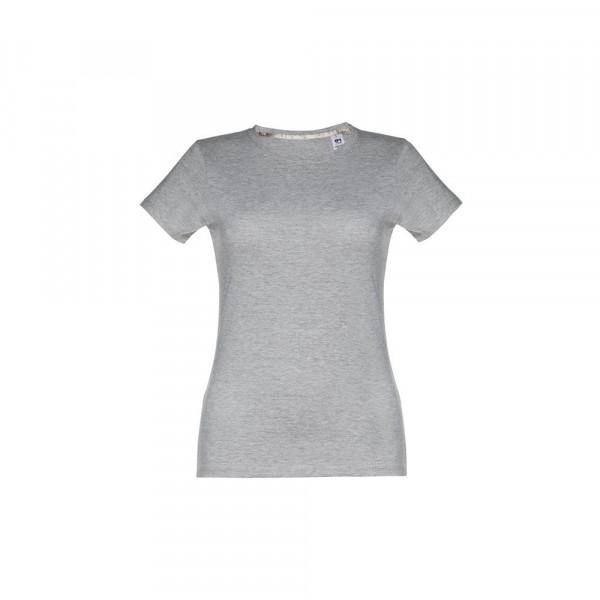 Getailleerd 100% gekaard katoenen jersey dames T-shirt (190 g/m²) (kleur 183: 90% katoen en 10% viscose). Bevat dunne jersey kraag met satijnen verstevigingslint. Gesneden en genaaid stuk met dubbele zoom aan de mouwen en onderkant. Maten: S, M, L, XL, XXL