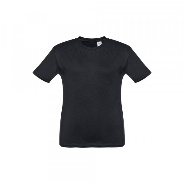 T-shirt voor kinderen (unisex). Van 100% gekaard jersey katoen (150 g/m²). Bevat een 1x1 ribkraag met tricotverstevigings biaisband. Geknipt en genaaid kledingstuk met dubbel gestikte zoom aan de mouwen en onderkant. Maten: 2, 4, 6, 8, 10, 12