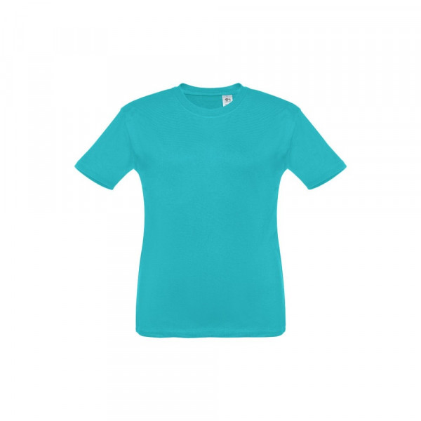 T-shirt voor kinderen (unisex). Van 100% gekaard jersey katoen (150 g/m²). Bevat een 1x1 ribkraag met tricotverstevigings biaisband. Geknipt en genaaid kledingstuk met dubbel gestikte zoom aan de mouwen en onderkant. Maten: 2, 4, 6, 8, 10, 12
