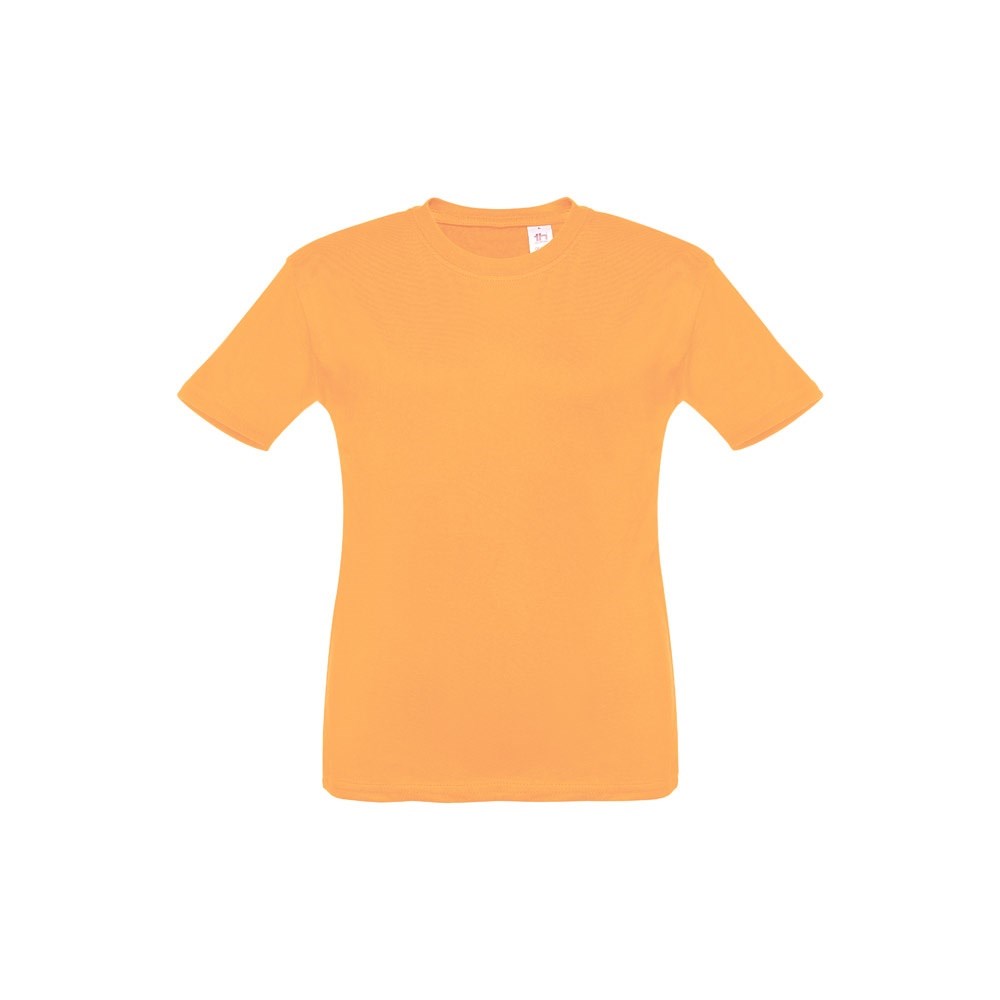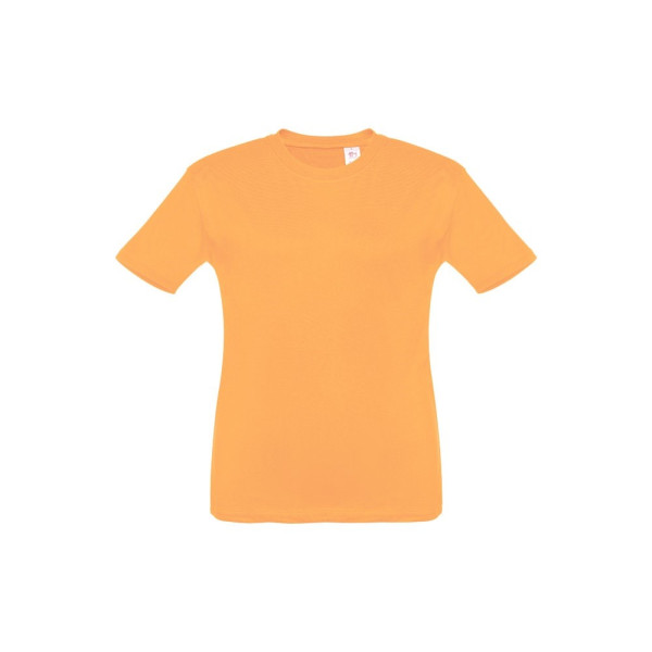 T-shirt voor kinderen (unisex). Van 100% gekaard jersey katoen (150 g/m²). Bevat een 1x1 ribkraag met tricotverstevigings biaisband. Geknipt en genaaid kledingstuk met dubbel gestikte zoom aan de mouwen en onderkant. Maten: 2, 4, 6, 8, 10, 12