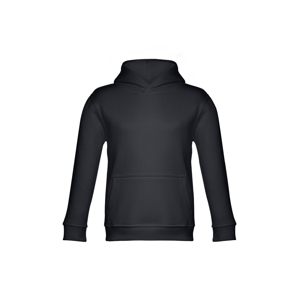 Sweatshirt met capuchon voor kinderen (unisex). Van 50% katoen en 50% polyester (320 g/m²) met gekaarde binnenkant. Met jersey gevoerde capuchon die voldoet aan de veiligheidsnormen van de Europese Unie. Sweatshirt met buidelzak en 1x1 rib mouwen en tailleband. Maten: 2, 4, 6, 8, 10, 12