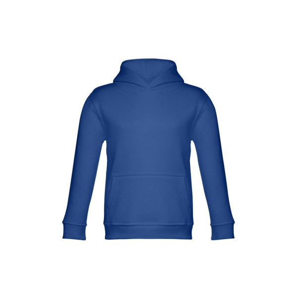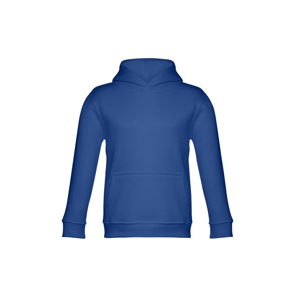 Sweatshirt met capuchon voor kinderen (unisex). Van 50% katoen en 50% polyester (320 g/m²) met gekaarde binnenkant. Met jersey gevoerde capuchon die voldoet aan de veiligheidsnormen van de Europese Unie. Sweatshirt met buidelzak en 1x1 rib mouwen en tailleband. Maten: 2, 4, 6, 8, 10, 12