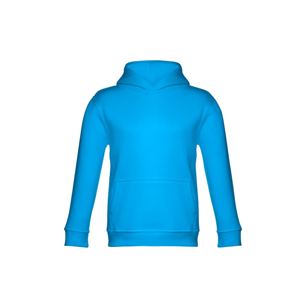 Sweatshirt met capuchon voor kinderen (unisex). Van 50% katoen en 50% polyester (320 g/m²) met gekaarde binnenkant. Met jersey gevoerde capuchon die voldoet aan de veiligheidsnormen van de Europese Unie. Sweatshirt met buidelzak en 1x1 rib mouwen en tailleband. Maten: 2, 4, 6, 8, 10, 12