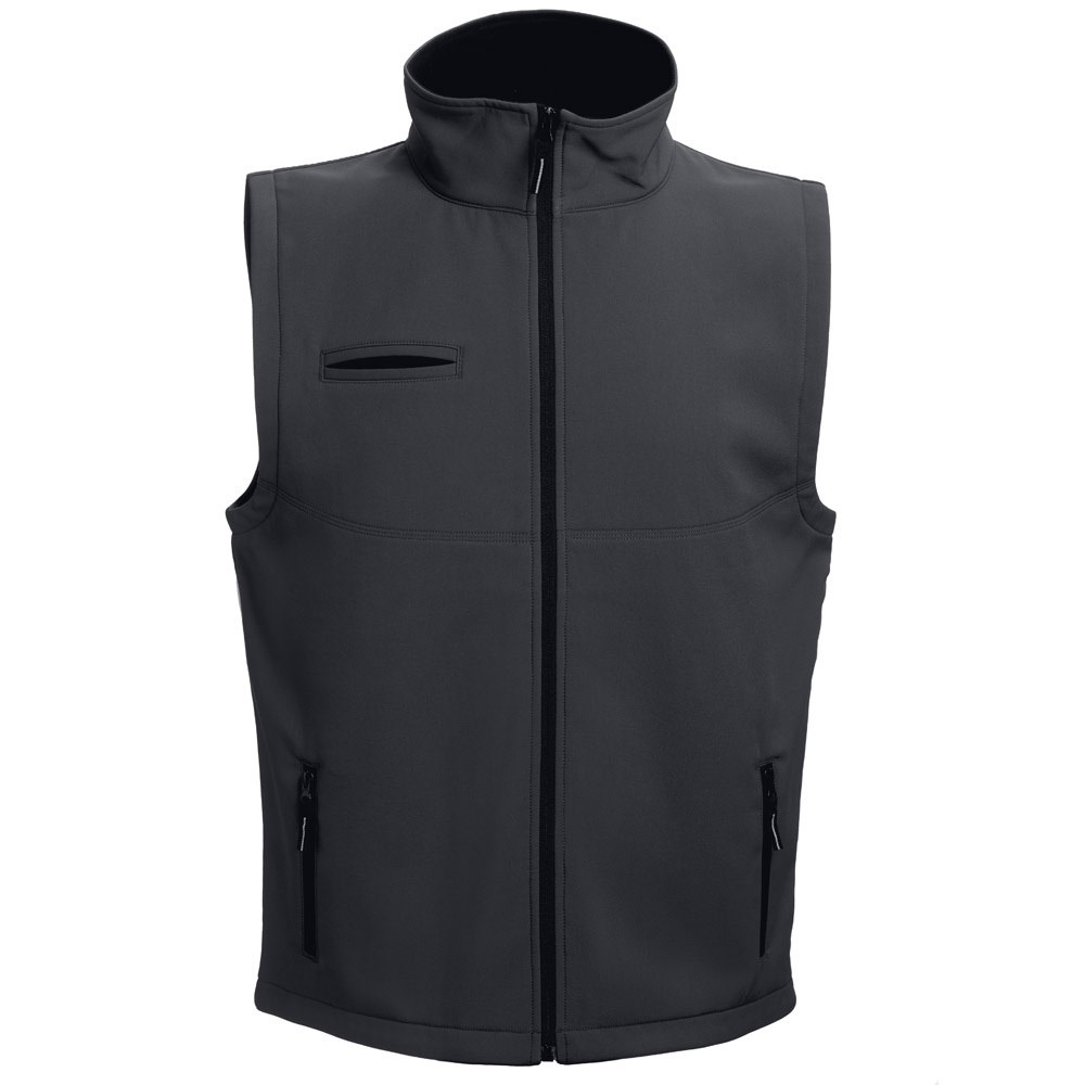 Unisex softshellvest van 96% polyester en 4% elastaan ​​met twee lagen (280 g/m²). Waterafstotend vest met een ruglengte langer dan de voorkant. Bevat drie zakken, twee zijvakken met ritssluiting en een dubbele paspelzak op de borst. Personaliseerbaar gebied met gemakkelijke toegang. Maten: S, M, L, XL, XXL, 3XL