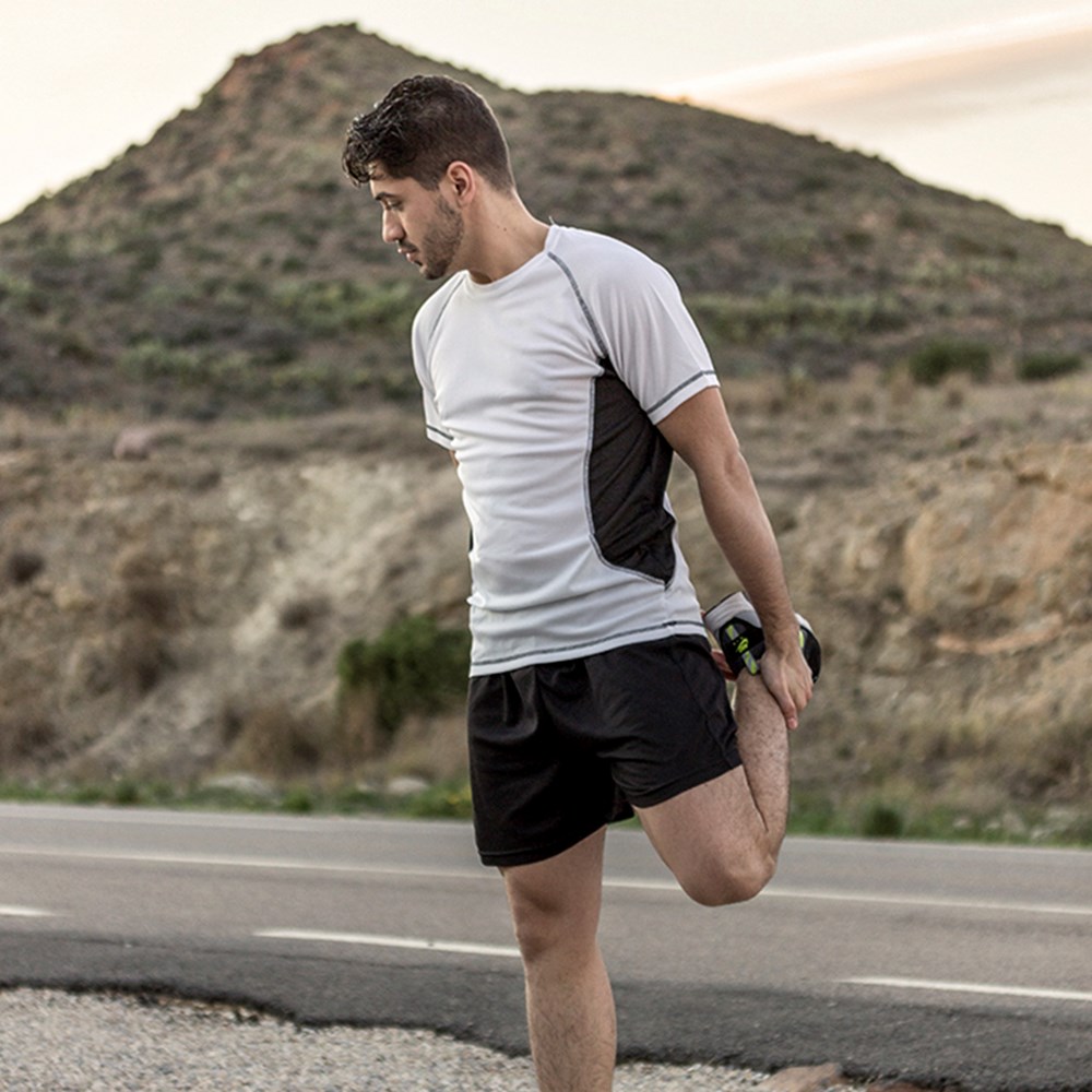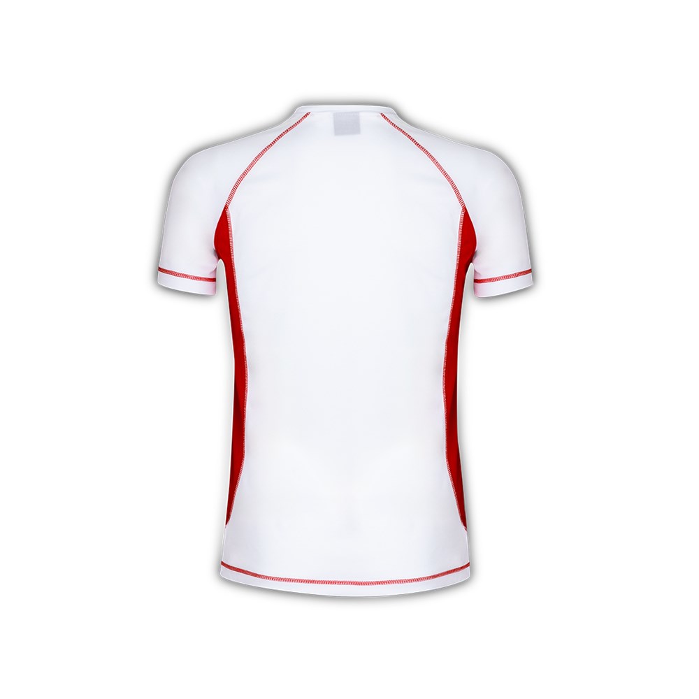 Sport T-shirt voor volwassenen van 100% ademend polyester 135 g / m2. Ontwerp in het wit met verstevigingsnaden en felgekleurde zijkanten. Verkrijgbaar in de maten S, M, L, XL, XXL.