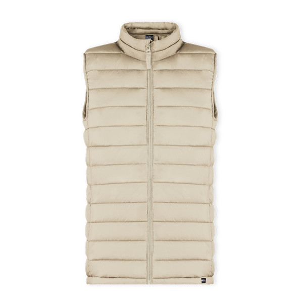 Unisex vest van warm en zacht materiaal 100% polyester RPET, gemaakt van gerecycled plastic om het hergebruik van plastic afval aan te moedigen en bij te dragen aan de duurzaamheid van de planeet. Van extra licht materiaal met veereffect, waterdicht en winddicht, met binnenvoering. Rits in de nek met klep en treklus, grote zijzakken met rits. RPET-label en verkrijgbaar in een brede waaier van kleuren. Maten S, M, L, XL, XXL.