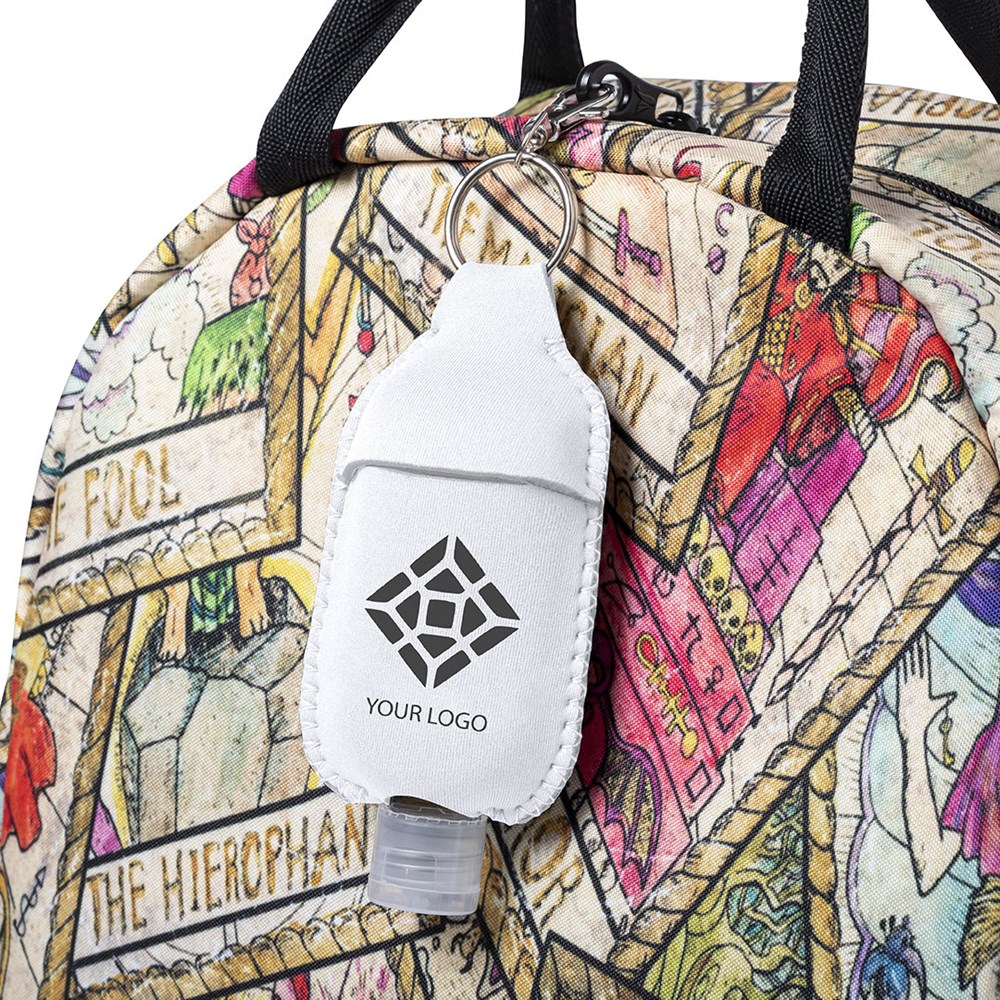 Aanpasbare gelhouder in zachte schaal. Verkrijgbaar in een groot aantal kleuren, met metalen ring en karabijnhaak. Ideaal voor onze artikelen 6571 en 2587.