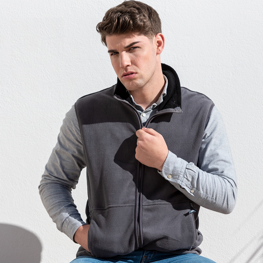 Vest van warm en zacht polar fleece 280 g / m2 met anti-pilling behandeling. Met gekleurde binnenkraag, ritssluiting met trekker met riem, ritszakken aan de zijkant en elastische taille. Verkrijgbaar in de maten M, L, XL, XXL.