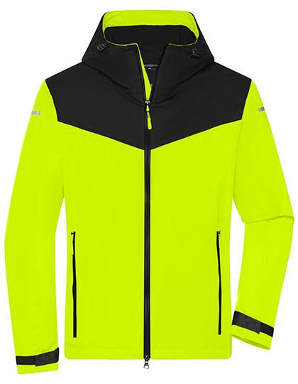 Licht, gevoerd softshell jack voor buiten | Materiaal buitenkant: (140 g/m²): 100% gerecycleerd polyester; voering: 100% gerecycleerd polyester / functioneel materiaal gemaakt van gerecycleerd polyester, met TPU-membraan | Wind- en waterafstotend (10.000 mm waterkolom) | Ademend en waterdoorlatend, damp (5.000 g / m² / 24 uur) | Getapete naden | Waterdichte ritsen | Lichte mesh-voering | Tweewegritssluiting over de gehele lengte bedekt met kinbescherming | Twee zijzakken, één binnenzak | Verstelbare kap | Klittenband voor aanpassing van de breedte op de mouwen | Ergonomische pasvorm, verlengd achterstuk | Stijlvolle, reflecterende details op mouw en achterkant | Rits voor decoratie aan de achterkant | Ritsen: YKK