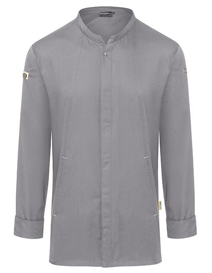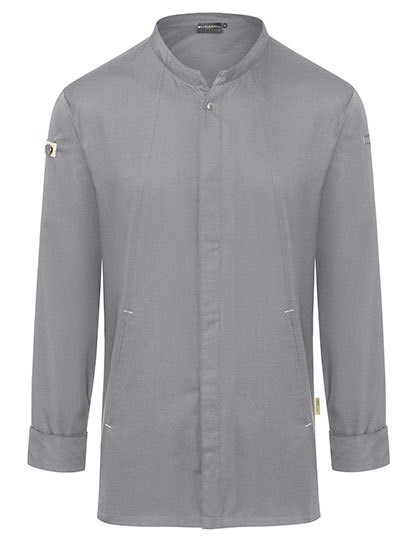 Voor: keperbinding, 150 g/m². | Achter: jersey piqué, 170 g/m², ademend, vochtregulerend | Innovatieve, duurzame koksjas in urban-stijl met natuurlijke flair | Het product bevat 72% gerecycleerd polyester en is geproduceerd op milieuvriendelijke en sociaal verantwoorde wijze | licht op maat | Inzet van jersey piqué in de rug biedt een comfortabele ventilatie en een grotere bewegingsvrijheid | Drukknopen voor snel openen en sluiten | Manchetten met drukknopen | Zakken met rits vooraan en zak op de linkermouw | Stijlvolle toepassing van contrasterende banden op de mouwen en de halslijn voor een urban-look | Green Button-etiket, www.g-k.eu/karlowsky