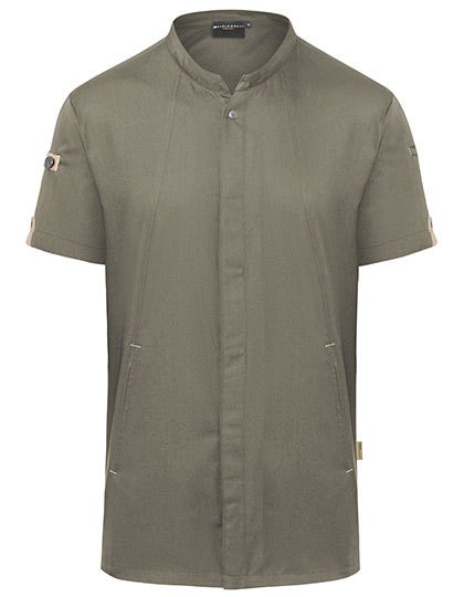 Voor: keperbinding, 150 g/m². | Achter: jersey piqué, 170 g/m², ademend, vochtregulerend | Innovatieve duurzame koksjas met korte mouwen die urban-stijl combineert met natuurlijke flair | Het product bevat 72% gerecycleerd polyester en is geproduceerd op milieuvriendelijke en sociaal verantwoorde wijze | licht op maat | Inzet van jersey piqué in de rug biedt een comfortabele ventilatie en een grotere bewegingsvrijheid | Drukknopen voor snel openen en sluiten | Zakken met rits vooraan en zak op de linkermouw | Stijlvolle toepassing van contrasterende banden op de mouwen en de halslijn voor een urban-look | Green Button-etiket, www.g-k.eu/karlowsky