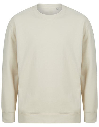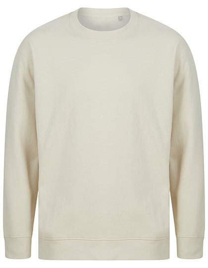 Unisex relaxed fit sweater | Geregenereerde katoen / Gerecycleerd polyester | Teruggeborstelde fleece | Ingezette mouwen, afhangende schouders | Droptail zoom - gebogen hoge voorkant, lage achterkant | Manchetten met geribbelde zoom en ronde hals | Single jersey nekband en voorzijde | Ton-sur-ton stikseldetail | Geen etiket | Hersluitbare, recycleerbare zakken - gemaakt van 100% gerecycleerde plastic