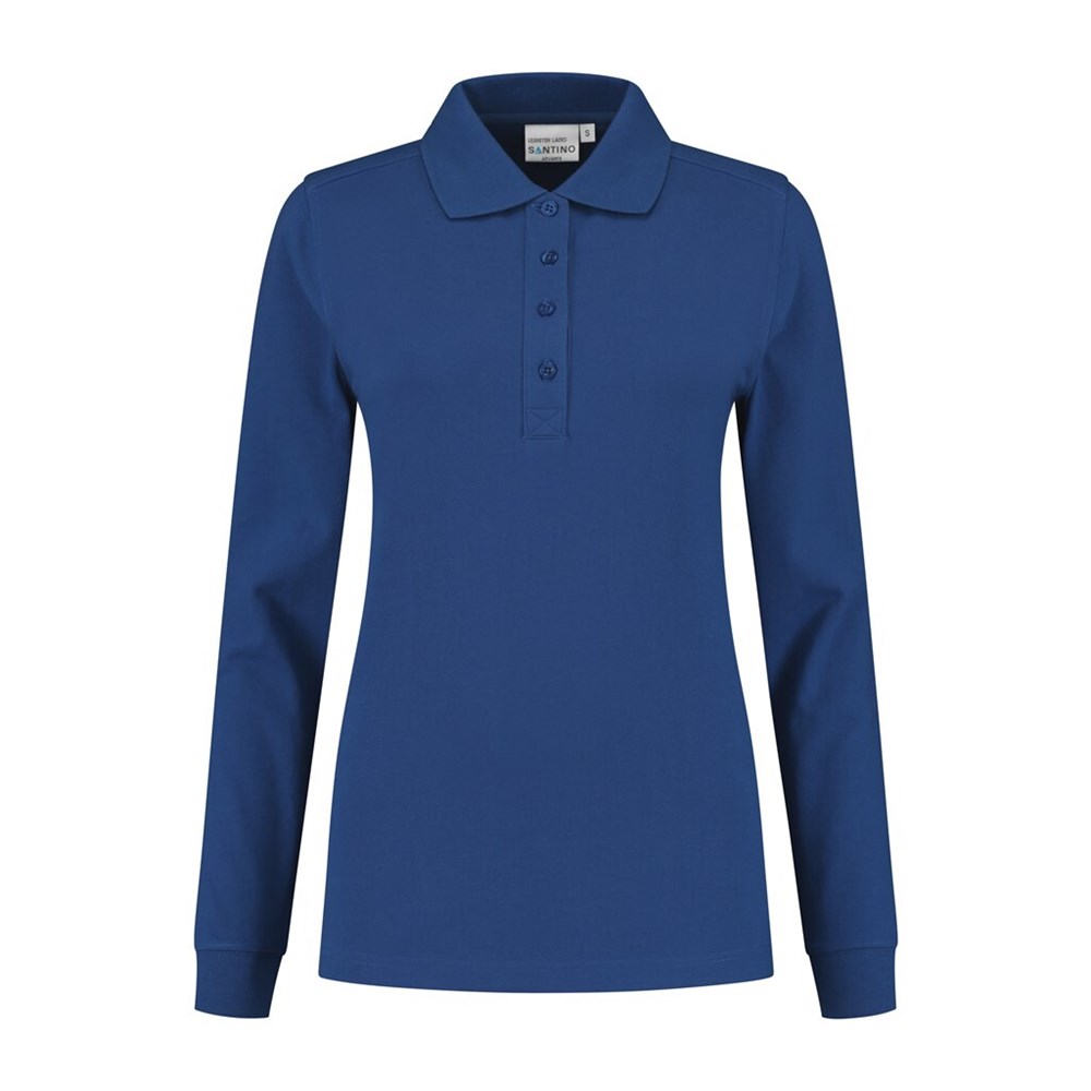 Poloshirt met lange mouw, 50% polyester / 50% lange vezel katoen, 220 gr/m², pique, ladies fit met polo-ribkraag, en 4-knoopsluiting, lange mouw met ribmanchet, 1x1 ribboord, splitjes in zijnaad, schouders voorzien van een dubbele laag stof voor extra versteviging, halve maan en anti-microbiële afwerking. (Sport grey is melange: 85% gekamd katoen / 15% viscose).
