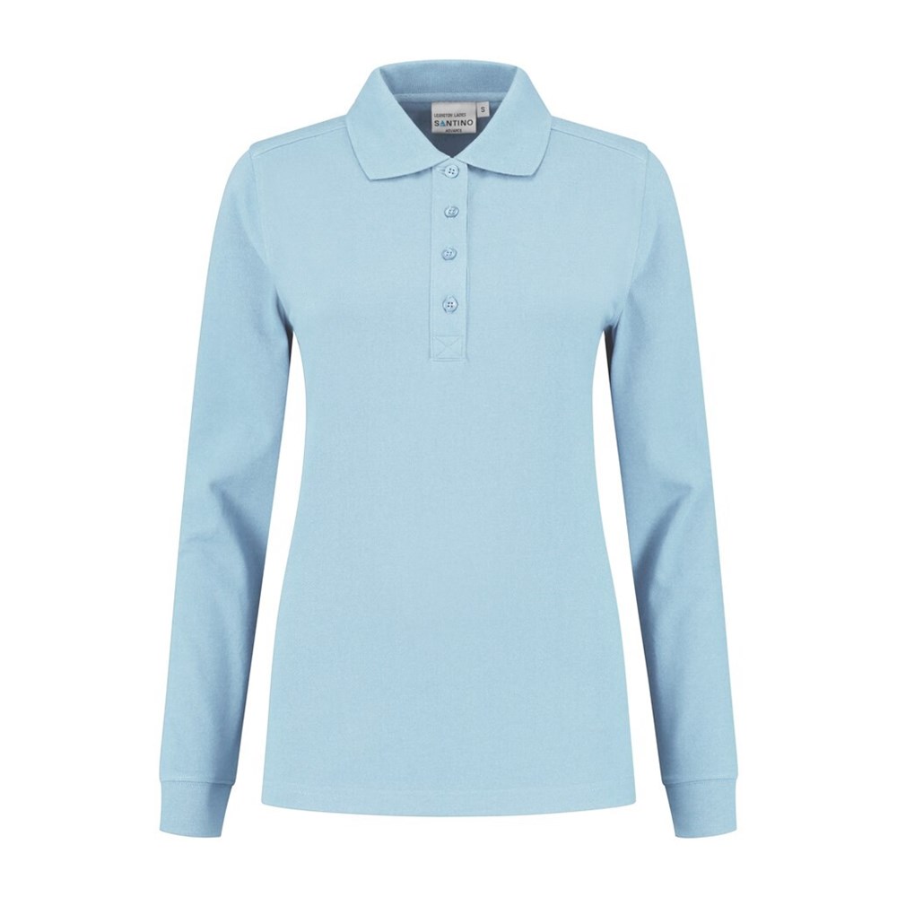 Poloshirt met lange mouw, 50% polyester / 50% lange vezel katoen, 220 gr/m², pique, ladies fit met polo-ribkraag, en 4-knoopsluiting, lange mouw met ribmanchet, 1x1 ribboord, splitjes in zijnaad, schouders voorzien van een dubbele laag stof voor extra versteviging, halve maan en anti-microbiële afwerking. (Sport grey is melange: 85% gekamd katoen / 15% viscose).
