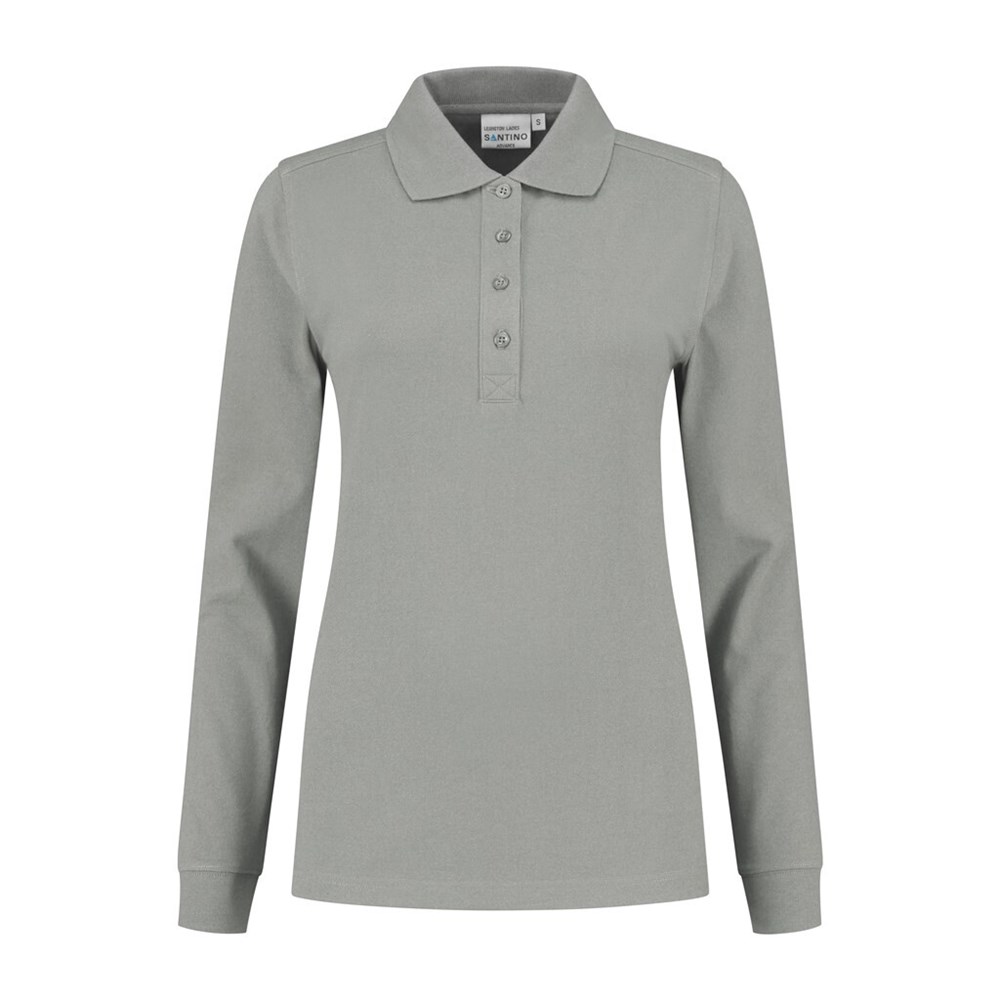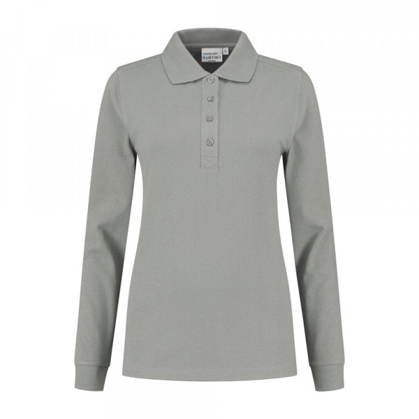 Poloshirt met lange mouw, 50% polyester / 50% lange vezel katoen, 220 gr/m², pique, ladies fit met polo-ribkraag, en 4-knoopsluiting, lange mouw met ribmanchet, 1x1 ribboord, splitjes in zijnaad, schouders voorzien van een dubbele laag stof voor extra versteviging, halve maan en anti-microbiële afwerking. (Sport grey is melange: 85% gekamd katoen / 15% viscose).