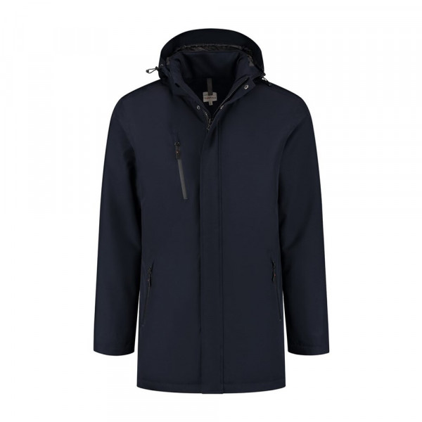 Parka, 100% polyester, 180 gr/m2, gevoerde parka met afneembare en verstelbare capuchon, gewatteerd, stof is gecoated en daardoor winddicht, waterdicht 5000 mm waterkolom en ademend 5000 gr/m2/24h. Opstaande kraag met voorsluiting 2-way YKK rits, borstzak en voorzakken met waterafstotende YKK ritsen. Mouw met windstopper, 1 binnen borstzak, 2 binnen heupzakken en een printrits aan de binnenzijde. Alle naden aan de binnenkant zijn waterdicht getaped.