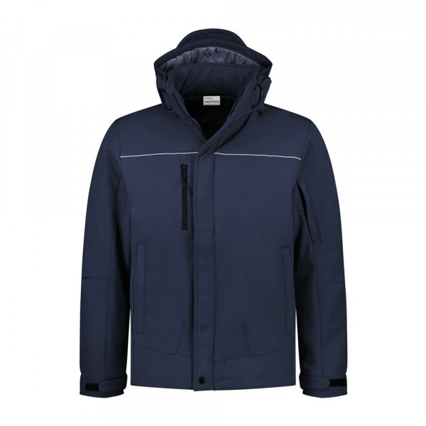 Softshell jacket, 94% polyester / 6% elastaan, 310 gr/m², 3 laags softshell, gewatteerd, regular fit met opstaande kraag, mouw met klitteband verstelbare manchetten en windvanger aan binnenzijde manchet, 2 steekzakken, borstzak en mouwzakje met YKK rits, winddicht, ademend, waterafstotend, binnenzak met rits en koptelefoonkabel doorgang, afneembare capuchon, reflectie piping op borst en rug, printersrits aan binnenzijde en onderzijde verstelbaar middels koord/stopper. (Alleen druktechnieken gebruiken die geschikt zijn voor stoffen als softshell.)