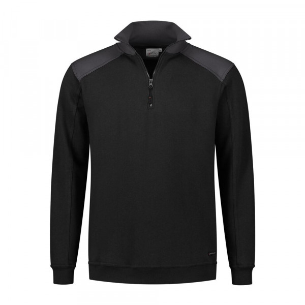Zipsweater, 50% katoen / 50% polyester, 280 gr/m², french terry met geruwde binnenzijde, regular fit met opstaande kraag met korte YKK rits, mouw met ribmanchet tailleband in 1x1 rib, kraag en schouderstuk in contrast kleur.