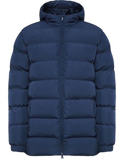 Bovenkant: 100% polyester, taffeta, 110 g/m²; Vulling: 100% polyester, 160 g/m²; Voering: 100% polyester, taffeta, 65 g/m² | Gewatteerde sportjas | Capuchon met klep | Tweerichtingritssluiting aan de voorkant met bijpassende ritstrekker en kinbescherming | Elastische manchet | 2 zijzakken met rits | Binnenborstzak aan de linkerkant | Toegang voor borduurwerk