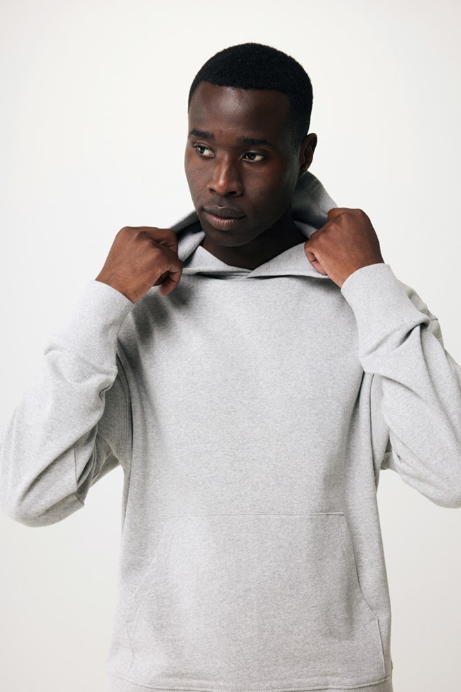 Unisex relaxed fit hoodie gemaakt van 100% katoen, waarvan 50% gerecycled en 50% biologisch, in 340 G/M². De hoodie heeft een relaxte pasvorm met verlaagde schoudernaden en wijdere lange mouwen. Het heeft een dubbellaagse capuchon en 2x1 rib. De zachte, gebrushte binnenkant zorgt voor extra draagcomfort. Het gebruik van echte gerecyclede en biologische stoffen en claims over de impact op het milieu zijn gevalideerd door het gebruik van de AWARE™ fysieke tracer en blockchain-technologie. Door de QR-code te scannen, krijgt u toegang tot een uniek digitaal paspoort van het product. 2% van de opbrengst van elk verkocht product wordt gedoneerd aan Water.org. Dit product is OEKO-TEX® STANDARD 100 gecertificeerd. Door het gerecycled materiaal kunnen eventueel kleine oneffenheden of lichte kleurverschillen ontstaan.