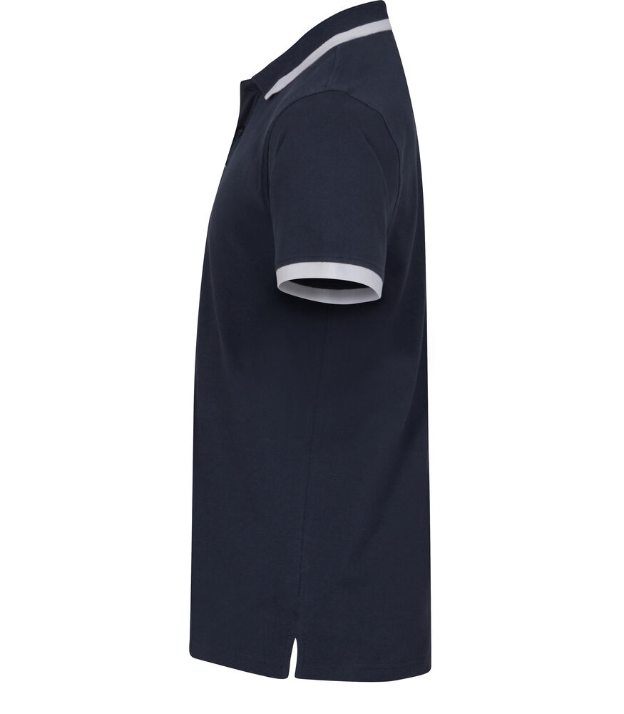 Moderne polo met contrasterende details in de kraag en bij de mouwen. De polo is hoogwaardig afgewerkt met zijsplitjes, ton sur ton knopen, verstevigde necktape en een gemakkelijk te verwijderen label voor rebranding. Goed te combineren met de Conrad en Amarillo polo’s.