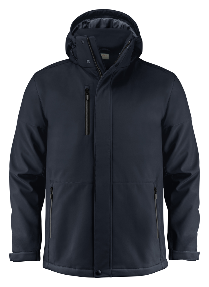 Gevoerde softshell jas met afneembare capuchon en stormflap met drukknopen. Aanpasbare mouwen met velcrosluiting en trekkoorden aan de capuchon en de zoom. 2 binnenzakken met ritssluitingen. Reflecterende piping op de rug. Uitscheurbaar neklabel en afzonderlijk geweven maatlabel. Aan de binnenzijde van de linkerzijnaad werd een zakje voorzien voor het innaaien van een waschip. De zippullers kunnen indien gewenst vervangen worden door één van de andere beschikbare kleuren. Oeko-Tex 100 gecertificeerd.