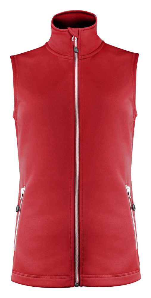 Sweatvest bodywarmer met lange ritssluiting in ringgesponnen stretchmateriaal. Contrasterende ritssluitingen, decoratieve flatlock naden en zijzakken met ritssluiting. SpunDyed. Oeko-Tex 100 gecertificeerd