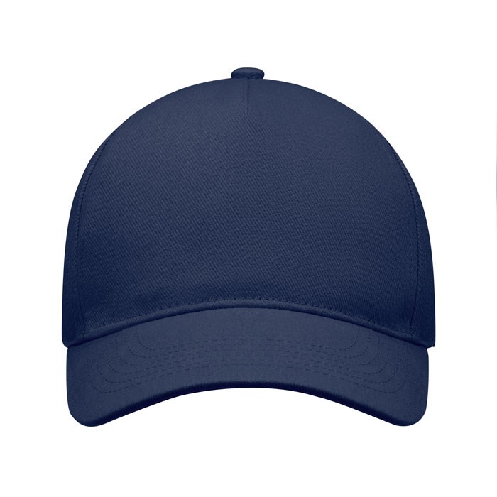 5 panelen baseballpet in zwaar geborsteld twill katoen 260 gr/m² met zilverkleurige stalen gesp. 4 geborduurde oogjes in bijpassende kleur. Maat 7 1/4.