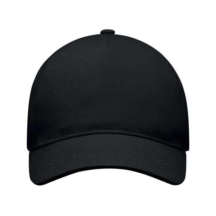 5 panelen baseballpet in zwaar geborsteld twill katoen 260 gr/m² met zilverkleurige stalen gesp. 4 geborduurde oogjes in bijpassende kleur. Maat 7 1/4.